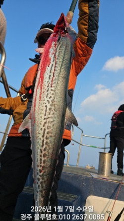 경주 읍천항 블루탱호입니다.어제 월욜, 바다날씨가 구름 끼고 파도가 불량했지만그래도 덩치급 겨울 먹삼치가랜딩되었습니다.모두가 미터급, 미터오버급사이즈였습니다.본 시즌에서 많이 안 잡혔던대삼치들이 겨울에 들어서니어군이 제법 입성된 것 같습니다.오늘 화욜부터 목욜까지는바다날씨가 좋지 않습니다.금욜부터 출항이 가능합니다.보편적으로겨울 먹삼치 시즌은12월에서 이듬해 3월까지입니다.계절적으로 아침과 저녁 무렵이 제일추운 시각이므로겨울 먹삼치들은 아침-저녁 피딩 타임이대체로 잘 형성되지 않습니다.대낮의 따뜻한 태양 복사열이 축적된시각에서 활성도가 제일입니다.그런 이유로2026년도 1~3월간의 먹삼치 시즌은11:00~17:00 사이 종일 한 타임만운영합니다.입질확률을 높이기 위해서 입니다.먹삼치 시즌 선비인하 이벤트 진행중.6시간 낚시ㅡ6만 원.(출항 스케줄)20/화~22/목ㅡ기상불량ㅡ휴항.23/금ㅡ6만 원, 6시간 낚시.오전ㅡ11:00 출항ㅡ자리 여유 많음.24/토ㅡ6만 원, 6시간 낚시.오전ㅡ11:00 출항ㅡ자리 여유 많음.25/일ㅡ6만 원, 6시간 낚시.오전ㅡ11:00 출항ㅡ자리 여유 많음.문의주세요!블루탱호:010 2637 0085. 10톤급 지깅 전문 낚시선으로서오직 대삼치, 참다랑어, 대방어,부시리 등을 집중적으로공략해 드립니다.대삼치 어종의 지깅 시스템을최초로 창안하고 전파시킨원조 선사 선장입니다.처음 도전하시는 조사님들의생소한 분위기를즐거운 낚시로 유도해 드립니다. 구명조끼 착용, 신분증 지참필수!출항인원은 선박 총정원수보다적게 모집하여 탑승시킵니다! 공용 특대형 쿨러어창이선수, 선미에 설치돼 있으며,개인 쿨러를 지참하여탑승하셔도 됩니다.수세식 화장실,그리고 넓은 휴게실이 있습니다. 선박을 항상 깨끗하게 청소하며늘 정리해서 번잡하지 않습니다.예약 후 선비를 바로 입금하셔야100% 예약완성 됩니다.예약 후 입금이 늦으면출조예약이 취소 될 수 있습니다. 바늘빼기 플라이어와 피빼기 칼은선박내에도 비치돼 있지만,빈번한 사용 때문에 개인별로따로 지참해 오시길 바랍니다.간혹 바다날씨의 급변화로 인해출항직전에 취소될 수 있으니반드시 꼭 참고해 주십시요!읍천항 근처 추천 펜션 숙박업소.(바다풍경펜션:010 2858 6600) '블루탱호' 밴드에재밌는 대삼치, 참다랑어, 방어들의이야기가 있습니다.https://band.us/@bluetangho 온라인 예약을 할 수 있으며,또한 선박의 자리배치도에서예약과 동시에 미리 낚시자리를선택할 수도 있으며,실시간 조황도 알 수 있고,예약상황 편성표도 미리 볼 수 있는 홈페이지가 있습니다.http://bluetang.sunsang24.com/ *대삼치, 참다랑어 등 포인트 탐색방법.1.먼저:어탐기로 정확한 어군추적. (정밀 수입어탐기:세밀한 어군분석)2.다음:어군의 이탈이 발생되면 즉각적인 포인트 이동.3.그 다음:대삼치 어선단과 시시각각 어군위치 정보교환, 동조협업. *음료수, 생수, 면장갑, 컵라면, 커피, 구명조끼, 케이블타이, 쇼크리더 무료! *오션낚시점(010-8999-1237)*메탈지그, 스티로폼 박스 등 낚시용품 판매, 일반장비 대여.*장비대여비는 출조 당일 현장에서 결제하세요.*오션낚시점에서는 대삼치 손질과 밀봉 포장 가능.*선박내 비상 메탈지그 구입 가능.*선박내 고급장비만 대여 가능. (한 타임당, 고급장비:2만 원)*빈 몸으로 오셔도 현장에서 모두 낚시 해결 가능합니다. *출조시간ㅡ하루 두 번 출항. 1.오전ㅡ06:30 출항, 11:30 입항. 2.오후ㅡ12:30 출항, 17:30 입항.*휴일선비ㅡ7만 원.*평일선비ㅡ5만 원(선비인하 이벤트).*선비 입금 후 예약 확정됩니다.*선박내에서 승선명부 작성합니다.*출항 30분 전에 미리 도착하세요!*출항시각은 계절에 따라 변동됩니다.*멀미알약은 출항 1시간 전에 복용.*귀미테는 출항 6시간 전에 부착.*자리배정은 예약하실 때 자리배치도를 보시고 선택하세요.*기상악화로 인한 출항 불가능은 예약금 100% 환불해 드립니다.*수협. 630-62-039911. 하승욱.*네비주소:경북 경주시 양남면 양남항구길 14-3.*블루탱호 선장:010 2637 0085. *** 경주 블루탱호 예약 안내 ***예약문의 : 010 2637 0085.오시는길 : 경북 경주시 양남면 양남항구길 14-3 (주상절리공원 주차장 앞 부둣가).인터넷 예약 홈페이지 : https://bluetang.sunsang24.com/
